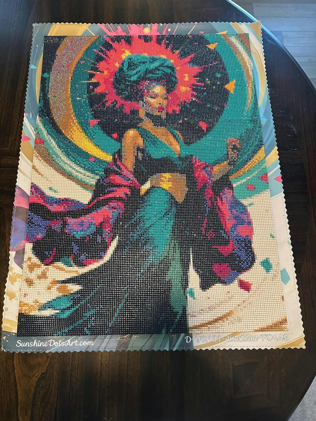This was my first kit from Sunshine Dots Art but it want be my last. I absolutely loved working on this canvas. The shipping was fast and packaging amazing. The canvas is soft and the canvas art extends all the way around the painting which is nice. I chose round drills this time but I want to try their squares next time. There were plenty of drills so not worries about running out. Overall I’m very satisfied with my purchase and I would love to work on their kits again in the future.