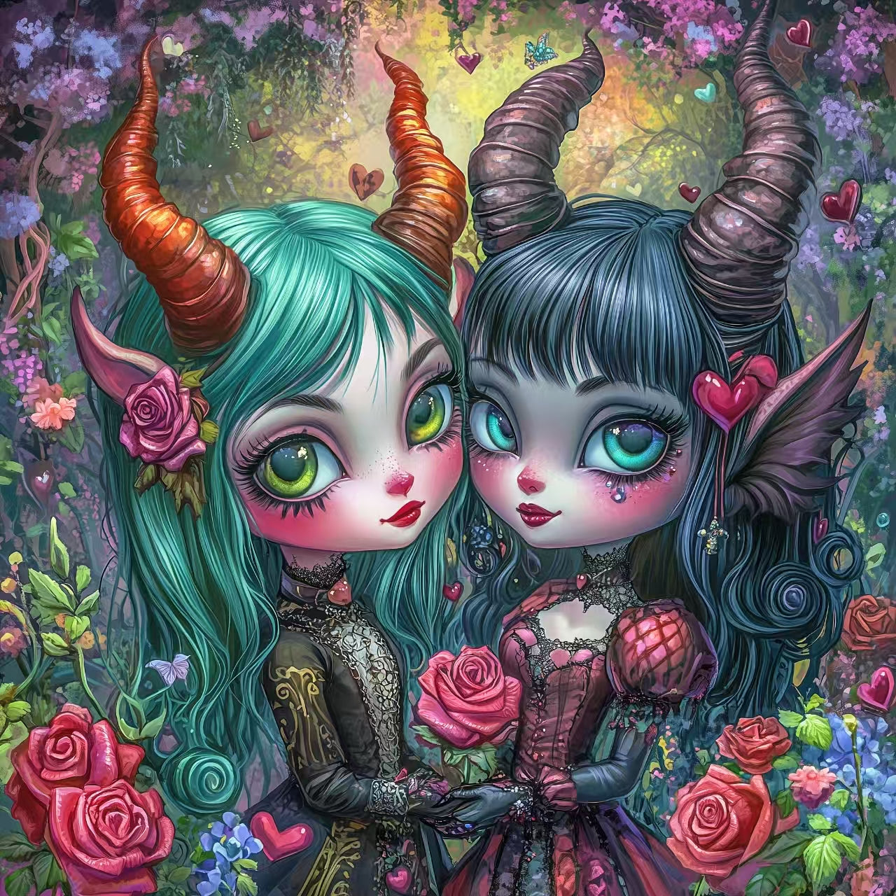 Bring a touch of mystical allure into your world with the Enchanted Bond Diamond Painting Kit. Featuring two horned sisters bound by magic and surrounded by roses, this artwork captures the beauty of connection, fantasy, and dark enchantment. With glowing accents and ethereal charm, it’s perfect for lovers of gothic fantasy, magical bonds, and captivating character art.