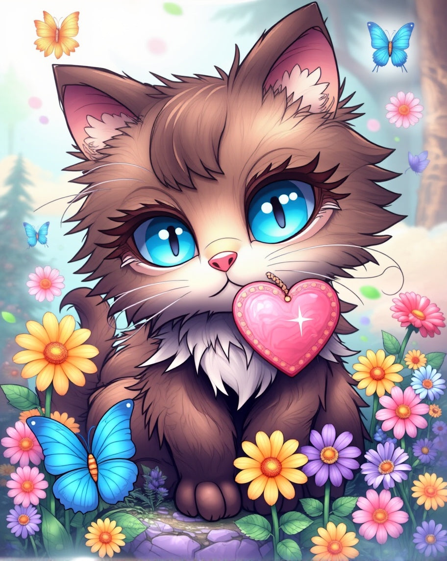 Bring a touch of sweetness into your world with the Heart of the Meadow Diamond Painting Kit. This adorable kitten with bright blue eyes and a heart pendant rests among blooming wildflowers and butterflies, radiating love and springtime magic. Perfect for cozy, feel-good crafting days.