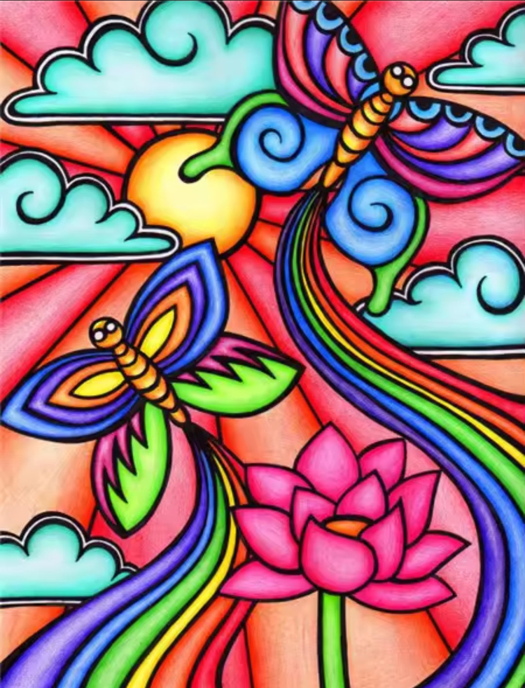 Rainbow Flight & Lotus Light (4FD + 4AB) Diamond Painting Kit